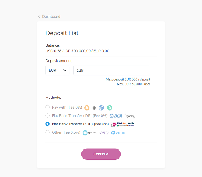 *Make sure you deposit a sufficient balance in order to buy a minimum amount of OJA Coin. 5,000 OJA at Pre Sale Stage 1, 2,500 OJA at Pre Sale Stage 2, and 1250 OJA at ICO. It is equivalent to USD 125, EUR 105 or IDR 1,775,000.